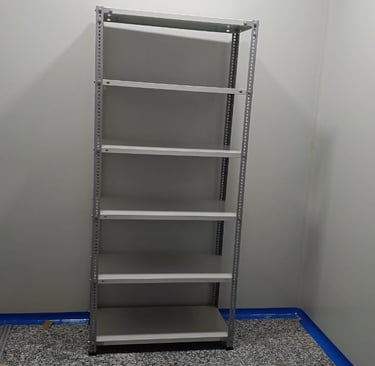 Adjustable shelves allow flexible storage for various lab or industrial items.