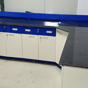 A pedestal-mounted workbench features a sturdy surface supported by a pedestal, making it ideal for laboratories that experience water or chemical spills, as it allows for easy floor cleaning. Made from durable materials like ERW pipes, these benches have leveling bolts for uneven floors. They also include shelves and drawers in various sizes to keep workspaces organized. The smooth, easy-to-clean surface and powder coating prevent rust and corrosion, Patilfab pedestal-mounted workbench promoting a budget-friendly and efficient work environment essential for productivity in labs.